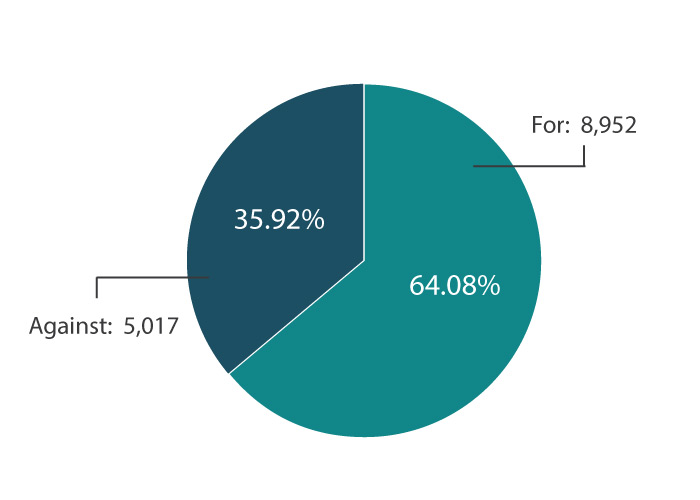 | For | 8,952 | 64.08% | 5,692 | 92 | 2 | 3,166 |