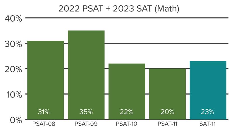 Percent of students demonstrating postsecondary readiness exam success, as measured by meeting college-ready benchmarks through 11th grade SAT School Day.